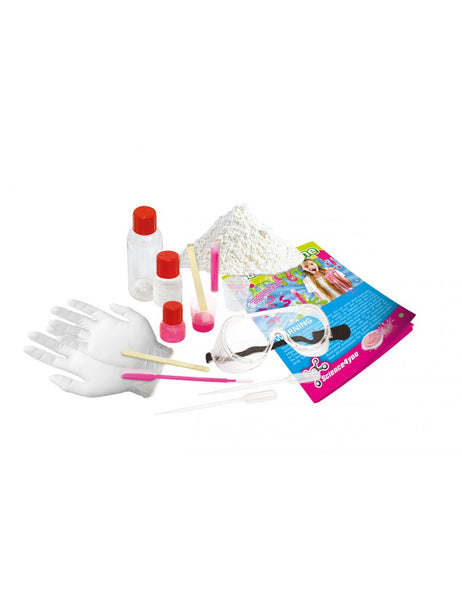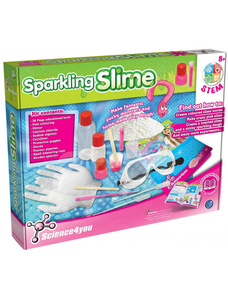This Slime Factory will allow you to create colored slime worms, make crazy pink slime, create a scented slime and a sticky sparkling dough, make fantastic yucky monsters and home-made play dough and many more experiments!