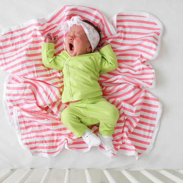 Made from a breathable, ultra-soft lightweight cotton blend. Perfect for everything from swaddling to stroller rides or nap time. Lightweight and one layer; perfect for throwing in the diaper bag for snuggling on the go.
