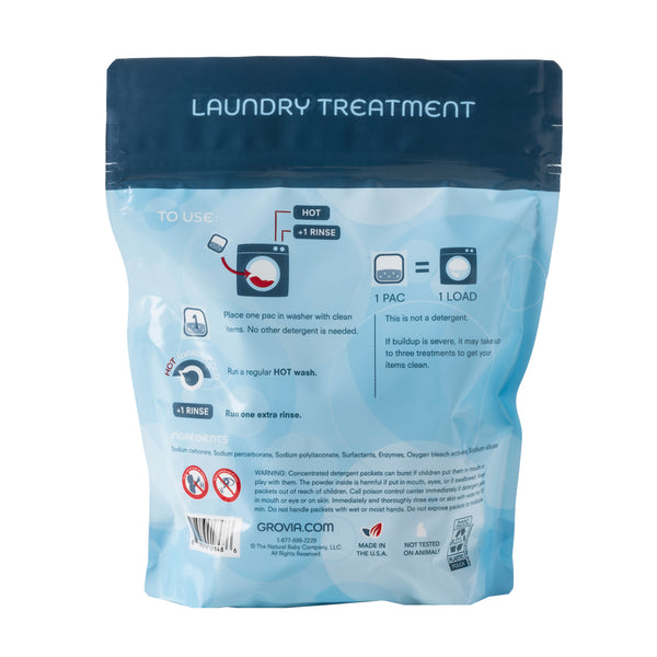 This uniquely formulated powder treatment is used to remove buildup of urine and minerals from cloth diapers and garments. This is not a detergent.