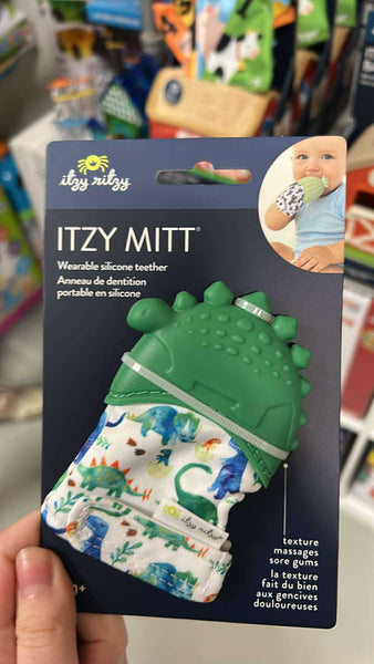 Babies love to chew to soothe swollen and teething gums. Our modern teething mitt is worn like a glove, making it perfect for babies who can’t yet hold a teether. The Itzy Ritzy Silicone Teething Mitt is made from food grade silicone and is durable, flexible and non-toxic. It includes a stimulating crinkle sound to keep baby entertained. The textured silicone surface helps baby discover new senses while getting relief from sore gums.