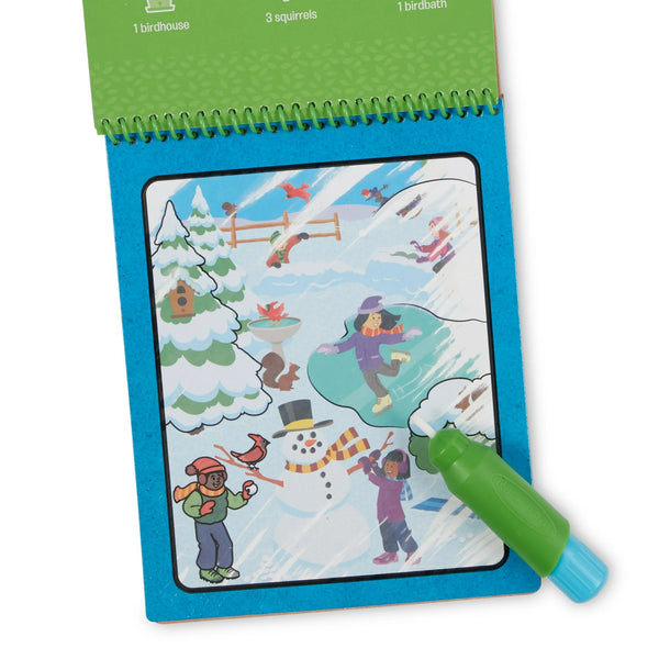 Explore outdoor scenes and adventures with the Melissa & Doug Let’s Explore™ Water Wow! Seasons Water Reveal Pad. The exciting no-mess paint-with-water activity for kids three and older includes four spiral-bound reusable pages (winter, spring, summer, and fall) and a refillable water pen. Simply use the pen to color in each scene and details and vibrant color appear with every stroke! Then, let the page dry to erase the pictures and color it in again and again. There are seek-and-find activities for every scene. The chunky water pen stores in the cover for easy portability. Let’s Explore™ encourages kids four and older to connect with the natural world through imaginative play. Discover the joy of outdoor adventures that instill curiosity and confidence while inspiring kids to say, “Let’s Explore™”!