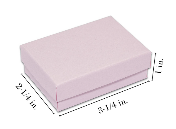Sturdy cardboard box with tarnish-free cotton fill. Great for small earrings, rings, keychains, and more!