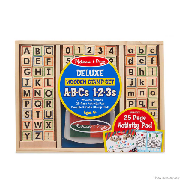 - Deluxe wooden letter and number Stamp set with 25 stamp-and-learn activity book