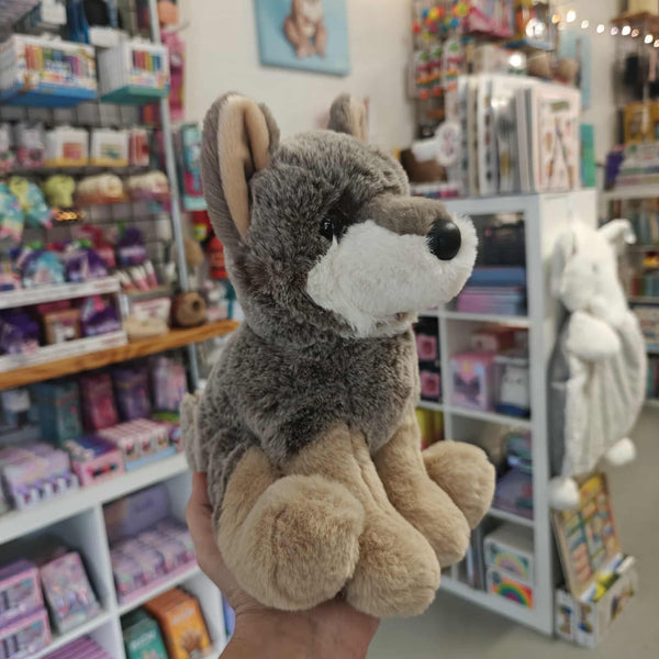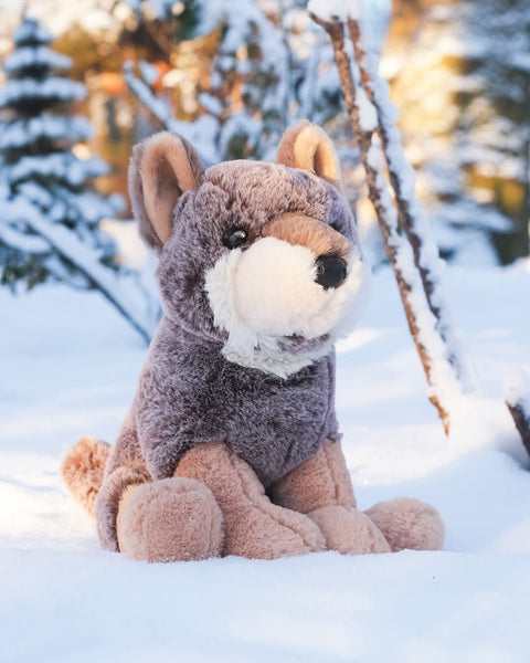 Snuggle up with Albie the Soft Wolf plush and discover the softer side of nature! Albie’s design features an assortment of muted natural colors for a lifelike appearance. Gray faux fur with frosted tips lends his body a grizzled look, while a pale colored bib draws attention to Albie’s face. His large, tan paws are filled with beans for a playful, floppy style that will invite interaction. Wolf lovers of all ages will be drawn in by Albie’s lively, amber colored eyes and huggable shape. Nature has never been so soft and cuddly. Invite our elegant Wolf stuffed animal into your pack and he’ll prove himself a steadfast companion!