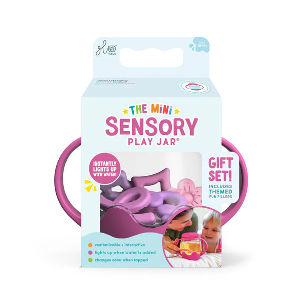 Our fan-favorite Sensory Play Jar®, now made MINI for tiny hands! From a calm-down companion, to a road trip buddy, or a sleepover sidekick – this jar is designed to go wherever play takes you. Add tap water and watch the Play Jar automatically light-up, glow, and cycle through 9 soothing colors. Plus, 5 silicone Fillers are already included, so playtime is sure to be extra magical!