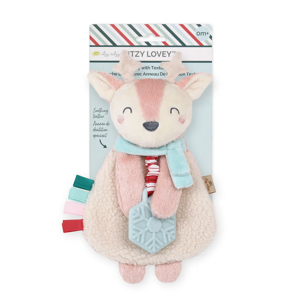 Itzy Ritzy Itzy Lovey Holiday Plush with Teether - Pink Reindeer