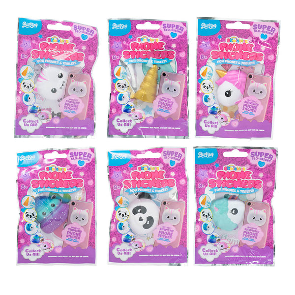 Decorate phones and tablets with a slow rising squishy. Unpeel and press the squishy sticker onto the flat surface. Add extra cuteness and decorate your device with adorable stickers. Includes one foam squishy and three sheets of stickers.