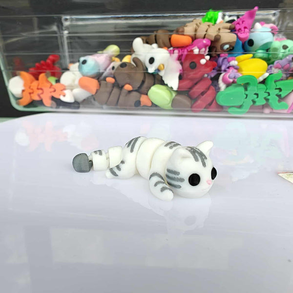 A cat that you can take anywhere! 1-1.5" 3D printed articulating cat fidgets that fit in your pocket.