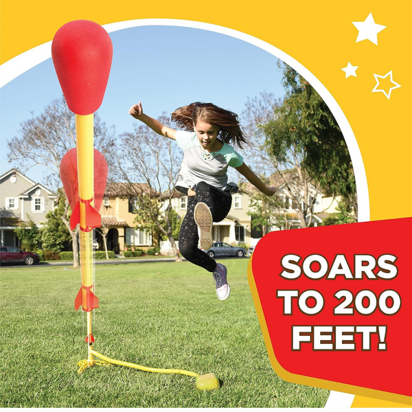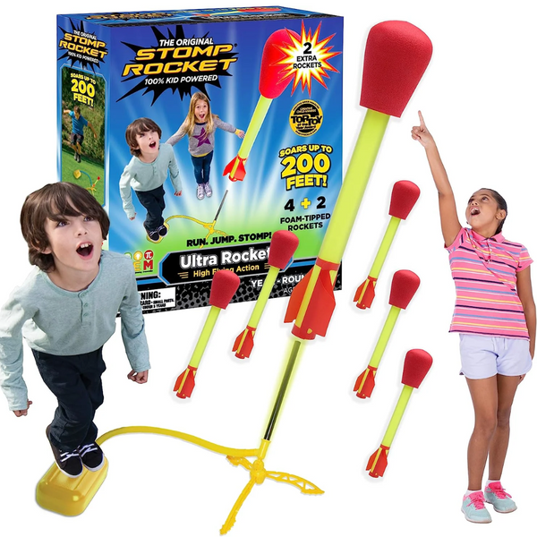 - Launch these rockets up to 200 feet in the air using The Original Stomp Rocket: Ultra 6-Rocket Set. Great for year round fun to get kids away from screen time and more active outdoors.